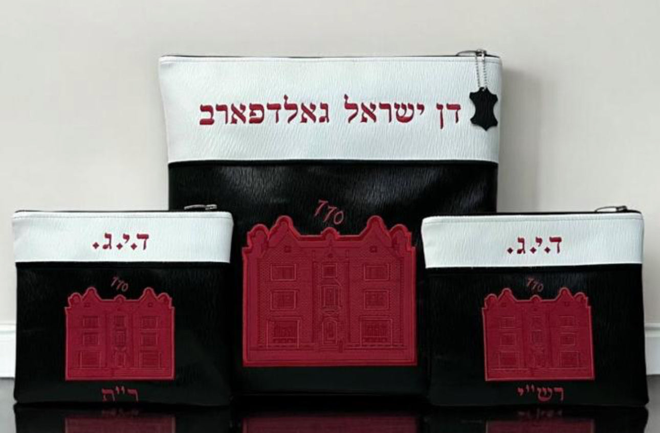 Tefillin Bag - Chabad Bar Mitzvah Double Bag - 19.5"W x 10.5"H - Suitable to carry two Large Tefillin Bags (Rashi+Rabeinu Tam).